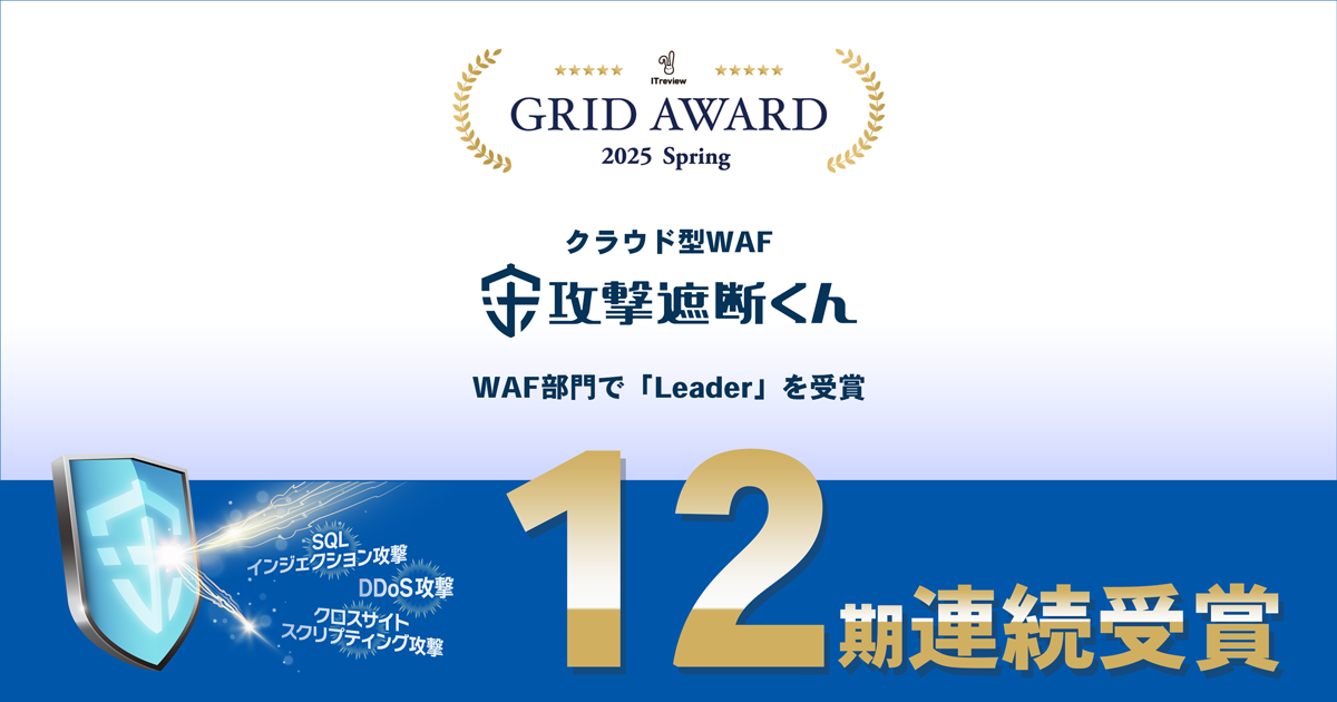 クラウド型WAF『攻撃遮断くん』が「ITreview Grid Award 2025 Spring」における WAF部門にて12期連続でLeaderを受賞